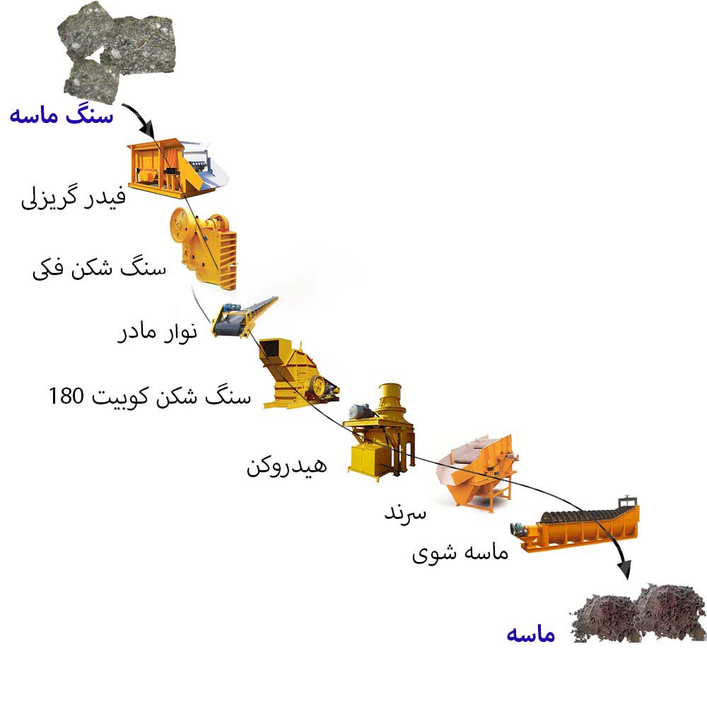 برای آشنایی بیشتر با سنگ شکن مخروطی هیدروکن یا مخروطی ماسه ساز ( شن و ماسه )، ریز شکن و قلوه شکن ، به طور مثال فرایند تولید ماسه آورده شده است. همانطور که در ابتدای بحث نیز مطرح شد، به این سنگ شکن، ماسه ساز دست دوم مخروطی نیز می گویند. این سنگ شکن مانند سنگ شکن های چکشی یا اچ اس، ضربه ای کوبیت و فکی همواره در بیشتر خط خردایش ها مورد استفاده قرار می گیرد.